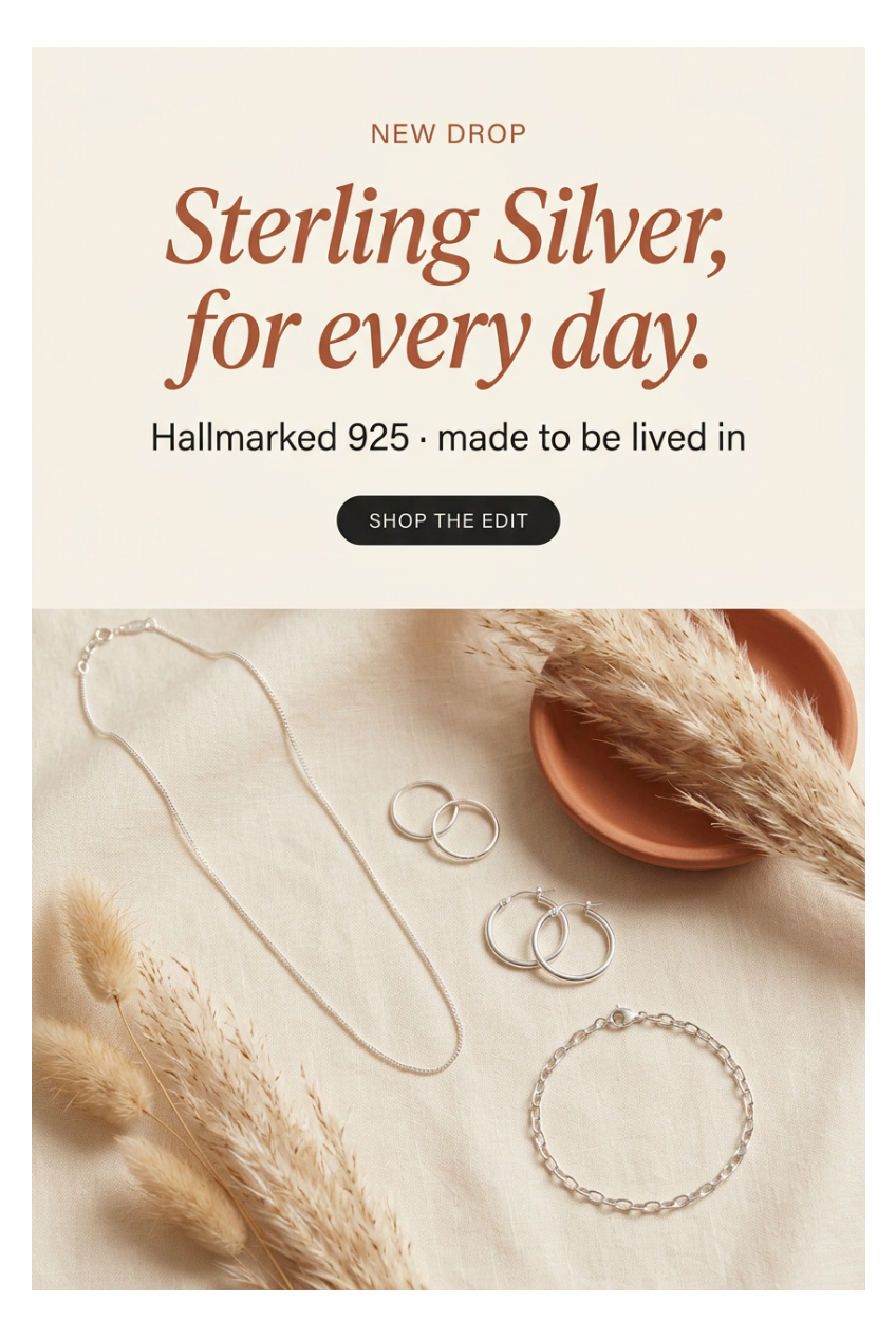 We exclusively craft our jewelry from premium 925 sterling silver, ensuring durability, shine, and timeless elegance.